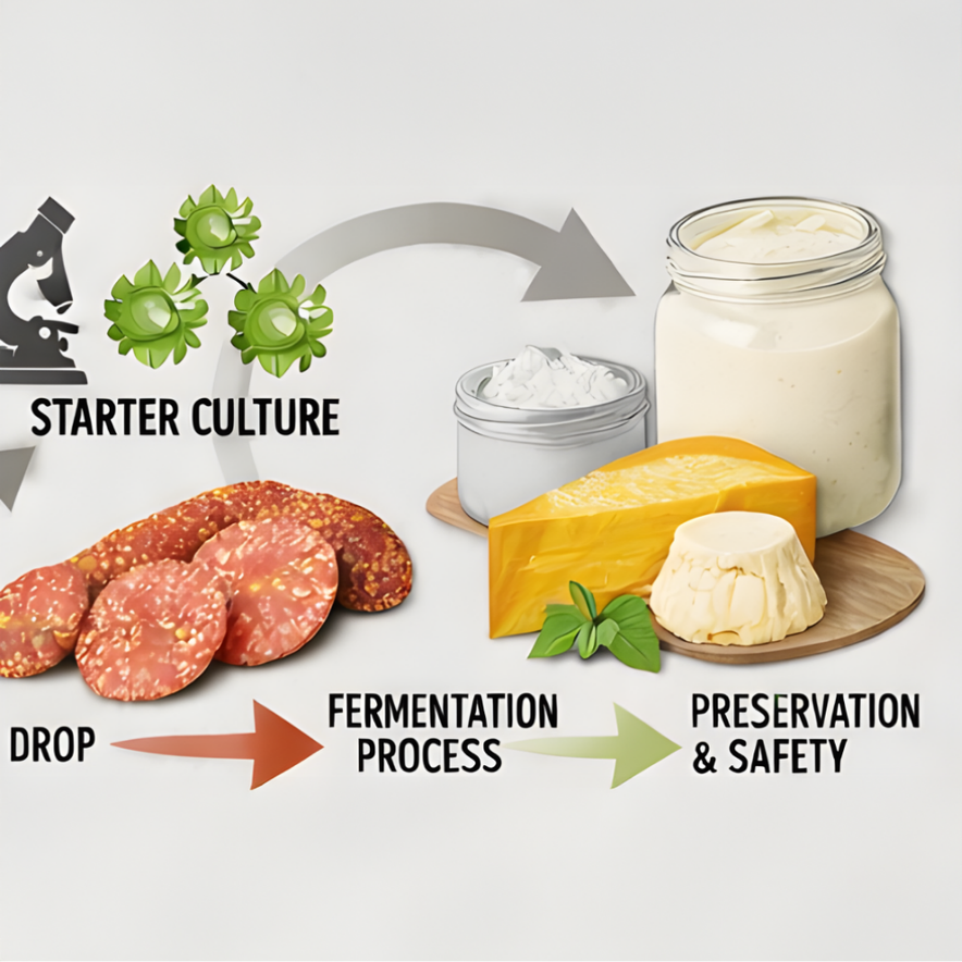 Starter cultures are essential in many food processes where fermentation drives product characteristics. By introducing specific strains of beneficial bacteria, these cultures enable predictable acidification and flavour development — critical for safe, high-quality fermented foods. Their use helps standardize production while enhancing sensory appeal and shelf life.